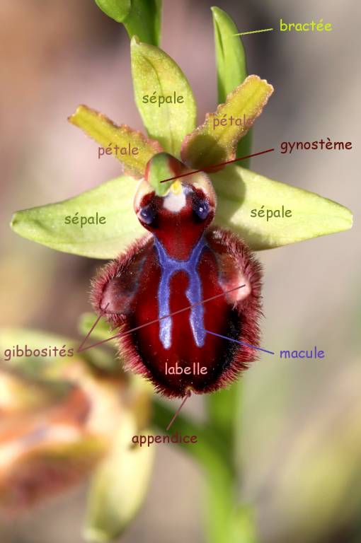 - Petite pièce attachée à un autre organe ; pour les Ophrys, l'appendice apical est un prolongement glabre situé à l'extrémité du labelle.